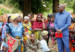 Mkuu wa Mkoa wa Ruvuma Kanali Laban Thomas akimsikiliza mwananchi kwenye mkutano wa hadhara uliofanyika katika kijiji cha lilondo kata ya Wino iliyopo Halmashauri ya Madaba Wilaya ya Songea, ambapo ul...